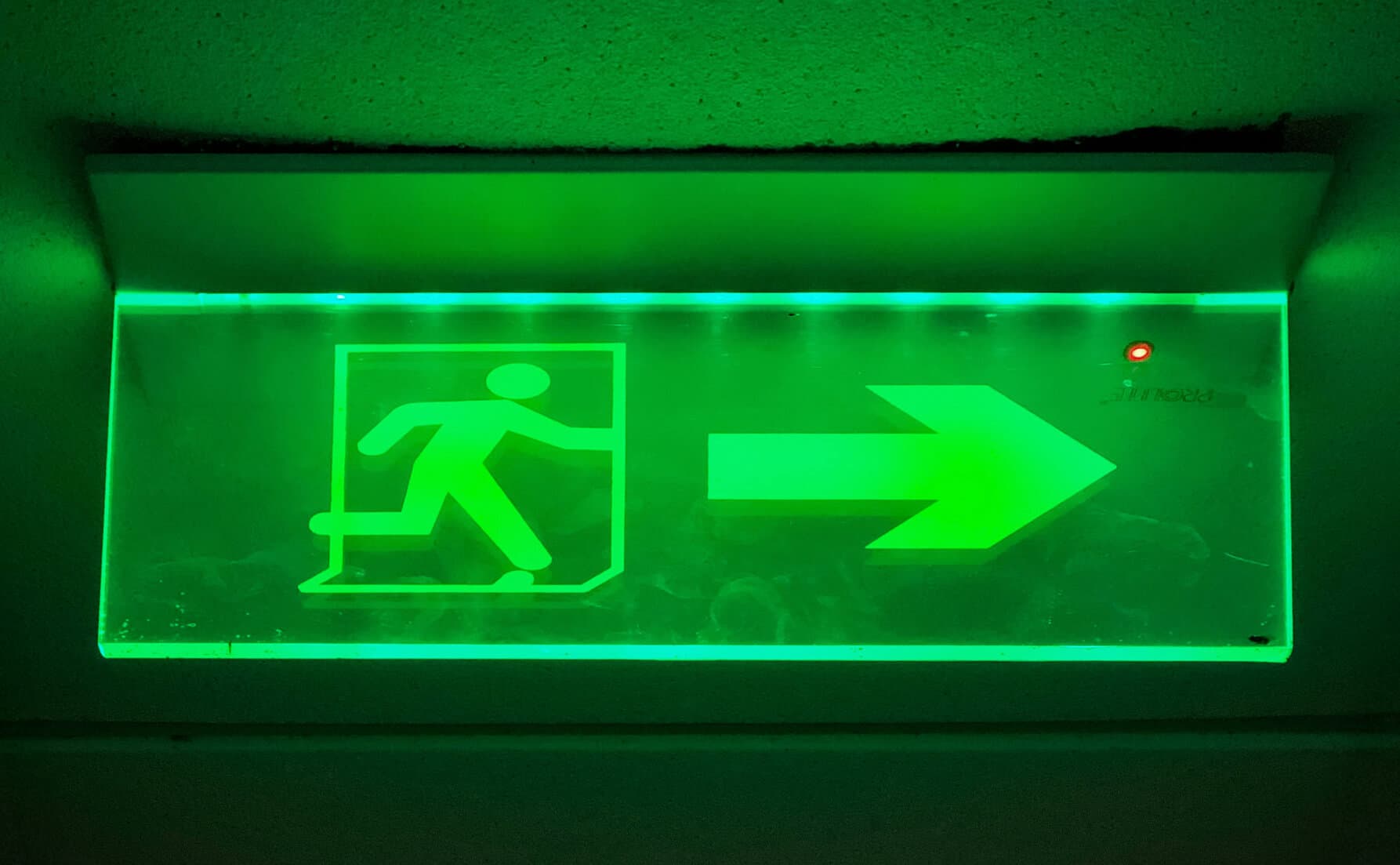 By law, every exit sign in Australia needs to feature an image of the green ‘running man’, which is the international symbol for an exit.